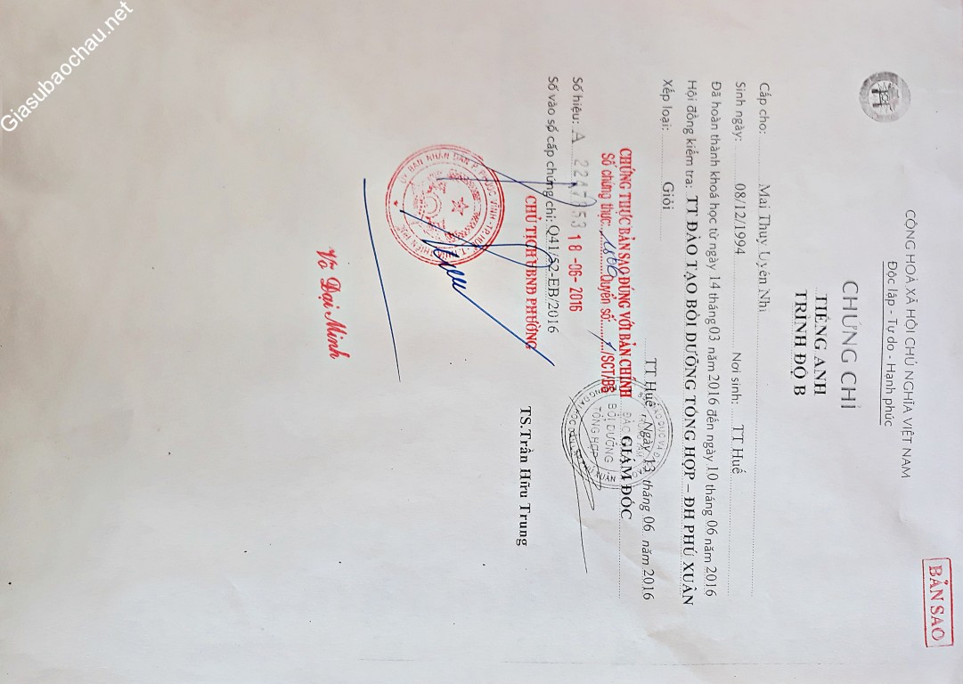 | Quê quán | TP. Huế - Thừa Thiên Huế |