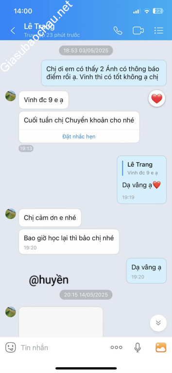 Danh sách TOP những gia sư được các phụ huynh học sinh đánh giá cao nhất.