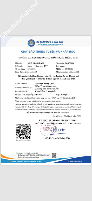 | Trường | ĐH Thương mại |