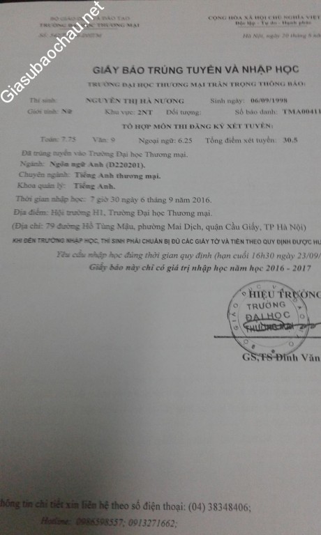 Quý phụ huynh vui lòng xem kỹ thông tin gia sư xem có phù hợp không rồi gọi tới một trong các số: 0966.042.043 (Cô Bảo Châu) - 0966.713.716 (Cô Lệ) của Trung tâm để thông báo việc lựa chọn gia sư này. Trung tâm sẽ gọi điện phỏng vấn gia sư thêm một lần nữa. Nếu gia sư đáp ứng yêu cầu và đồng ý dạy, Trung tâm sẽ gửi số điện thoại của Quý phụ huynh cho gia sư để hai bên trao đổi trực tiếp với nhau.