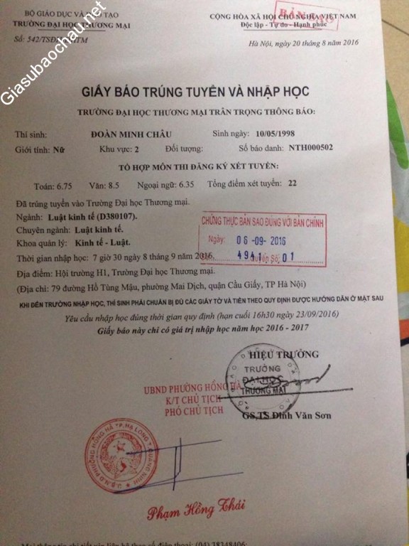| Sống tại | số nhà 5 ngõ 44 Phạm Thận Duật |