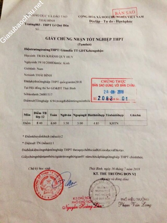 | Quê quán | TP. Thái Bình - Thái Bình |