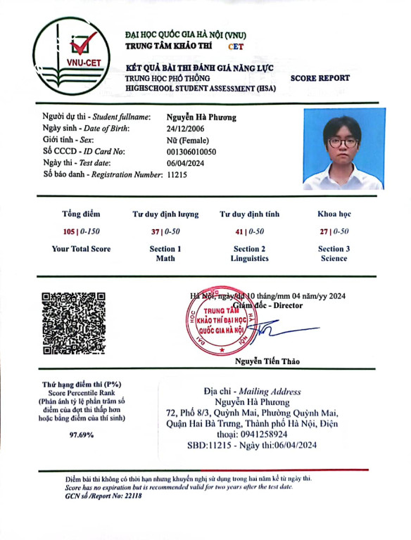 | Giới tính | Nữ |