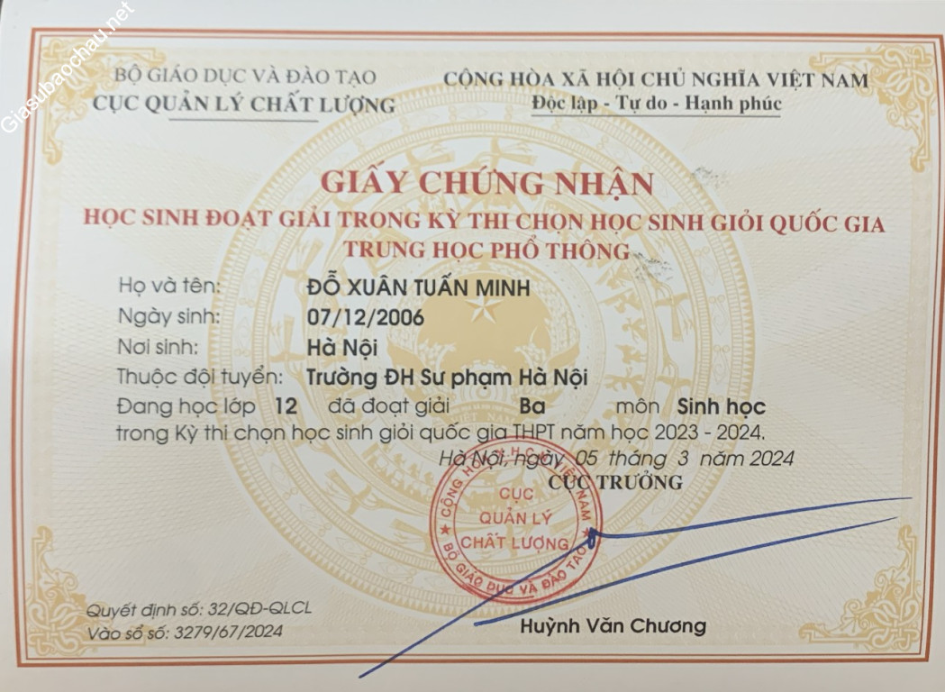 Quý phụ huynh vui lòng xem kỹ thông tin gia sư xem có phù hợp không rồi gọi tới một trong các số: 0966.042.043 (Cô Bảo Châu) - 0966.713.716 (Cô Lệ) của Trung tâm để thông báo việc lựa chọn gia sư này. Trung tâm sẽ gọi điện phỏng vấn gia sư thêm một lần nữa. Nếu gia sư đáp ứng yêu cầu và đồng ý dạy, Trung tâm sẽ gửi số điện thoại của Quý phụ huynh cho gia sư để hai bên trao đổi trực tiếp với nhau.