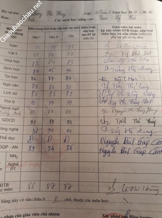 Em là Đặng Thị Thúy. Em đang là sinh viên năm nhất đại học Y hà Nội, ngành đa khoa. Quê em ở Hà Tĩnh và cấp 3 em học trường THPT Chuyên Hà Tĩnh lớp chuyên Toán 1. Trong 12 năm đi học đều được học sinh giỏi. Cấp 1, cấp 2 và cấp 3 em đều thi học giỏi cấp huyện và tỉnh. Trong những lần đó thì năm nào em cũng có giải của huyện( vì chỉ có lớp 5, lớp 9 và cấp 3 mới được thi tỉnh). Lớp 5 em được giải Nhì tỉnh, lớp 9 được giải Nhì tỉnh, lớp 10 giải Nhì tỉnh, lớp 11 và 12 giải Ba tỉnh, đều là của môn Toán.Và em cũng được giải Nhì tỉnh môn máy tính cầm tay. Trong 3 năm học cấp 3 có 6 kì thì 4 kì em có học bổng .Vì học chuyên toán trong suốt 3 năm nên kiến thức của em khá rộng. Em dạy học sinh đầu tiên sẽ không chỉ đáp án luôn, mà dần dần đưa ra gợi ý rồi sau đó sẽ chỉ cho các em cách làm cụ thể. Và trong các bài tiếp theo thì sẽ cho những bài tương tự, thay số rồi cho các em bài mở rộng hơn nếu các em muốn học cao hơn. Cách dạy của em khá nghiêm túc, học ra học, chơi ra chơi. Việc 2 tiếng học nghiêm túc còn hơn cả ngày vừa học vừa chơi, hiệu quả sẽ không những không cao mà còn đi xuống, dễ sao nhãng. Nhưng bình thường thì em là người hay cười và hòa đồng ạ. Em nghiêm túc trong việc học vì không muốn phí thời gian của em, không muốn phí những đồng tiền mà phụ huynh đã trả để cho con em mình học tốt hơn. Và hơn hết là không muốn phí thời gian của các em. Trên thế giới thì chỉ có 1 cái mà ai cũng sòng phẳng, đó là mỗi người đều có 24h mỗi ngày. Chúng ta chính là tỉ phú về thời gian và việc tận dụng thật tốt thời gian đó sẽ giúp chúng ta hơn những người cả ngày không làm được việc gì có ích. Em sẽ hướng dẫn cách học toán cho các em 1 cách đúng đắn. Sẽ có bài tập củng cố cho các em sau mỗi bài dạy và hi vọng phụ huynh sẽ nhắc nhở các em làm bài tập. Tầm khoảng 2 tuần sẽ cho các em 1 bài kiểm tra nhỏ để các em không quên cũng như củng cố lại những gì đã học.