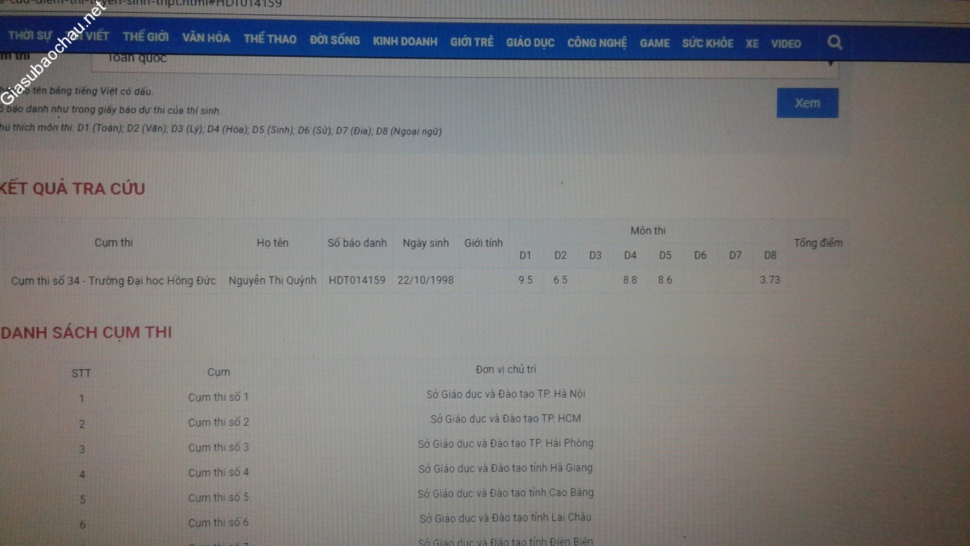 -**- Học sinh giỏi đều từ năm lớp 1 đến lớp 12, điểm trung bình đứng đầu lớp, và với các thành tích trong kì thi HSG như sau