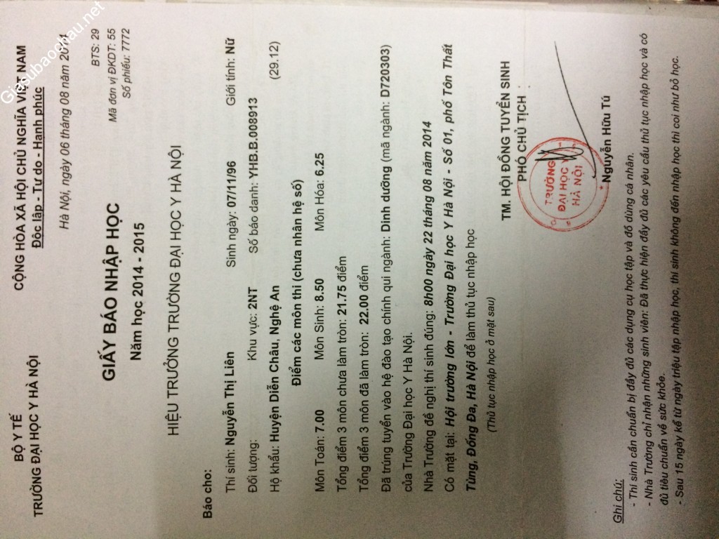 | Trường | ĐH Y Hà Nội |