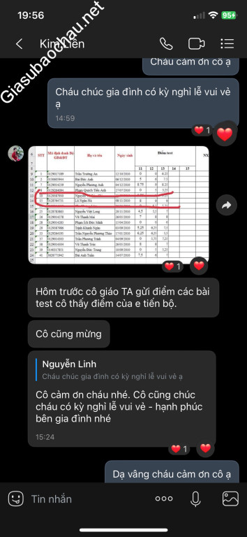 Danh sách TOP những gia sư được các phụ huynh học sinh đánh giá cao nhất.