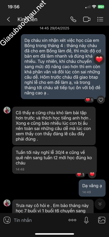 Quý phụ huynh vui lòng xem kỹ thông tin gia sư xem có phù hợp không rồi gọi tới một trong các số: 0966.042.043 (Cô Bảo Châu) - 0966.713.716 (Cô Lệ) của Trung tâm để thông báo việc lựa chọn gia sư này. Trung tâm sẽ gọi điện phỏng vấn gia sư thêm một lần nữa. Nếu gia sư đáp ứng yêu cầu và đồng ý dạy, Trung tâm sẽ gửi số điện thoại của Quý phụ huynh cho gia sư để hai bên trao đổi trực tiếp với nhau.