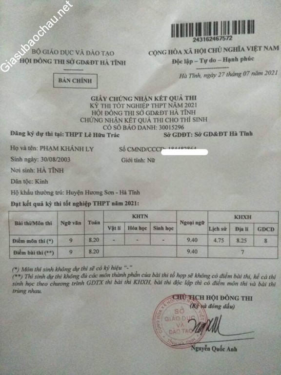 | Quê quán | Hương Sơn - Hà Tĩnh |