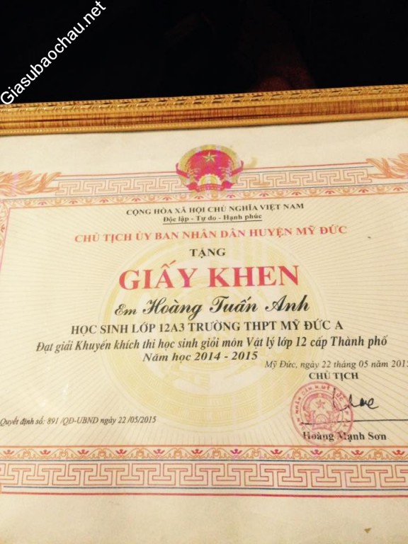 Danh sách TOP những gia sư được các phụ huynh học sinh đánh giá cao nhất.