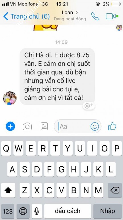 + Tôi đã gia sư cho em Trần Bảo Hà (trường THPT Yên Hòa). Em là một học sinh thông minh, học tốt những môn tự nhiên nhưng không có hứng thú với môn Văn. Năm học trước, em đã bị mất danh hiệu học sinh giỏi vì điểm tổng kết môn văn dưới 6,5. Nhờ sự cố gắng từ cả hai, điểm tổng kết môn văn năm lớp 12 của em được nâng lên thành 8,2.