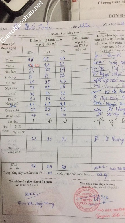 Danh sách TOP những gia sư được các phụ huynh học sinh đánh giá cao nhất.