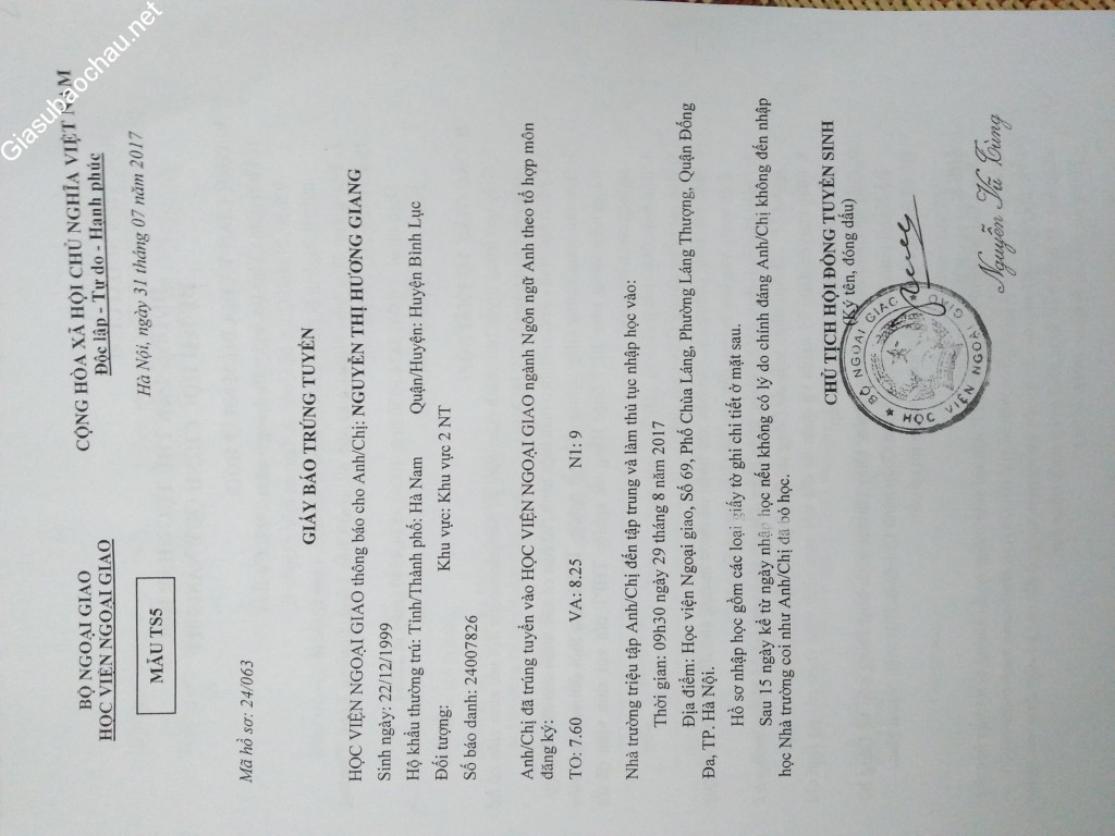 | Trường | HV Ngoại giao |