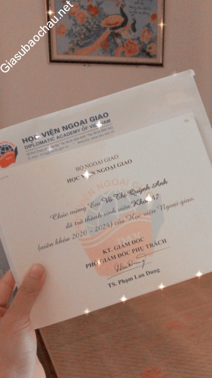 Quý phụ huynh vui lòng xem kỹ thông tin gia sư xem có phù hợp không rồi gọi tới một trong các số: 0966.042.043 (Cô Bảo Châu) - 0966.713.716 (Cô Lệ) của Trung tâm để thông báo việc lựa chọn gia sư này. Trung tâm sẽ gọi điện phỏng vấn gia sư thêm một lần nữa. Nếu gia sư đáp ứng yêu cầu và đồng ý dạy, Trung tâm sẽ gửi số điện thoại của Quý phụ huynh cho gia sư để hai bên trao đổi trực tiếp với nhau.