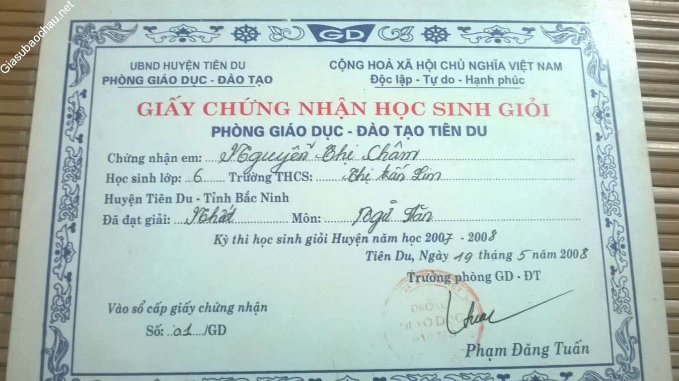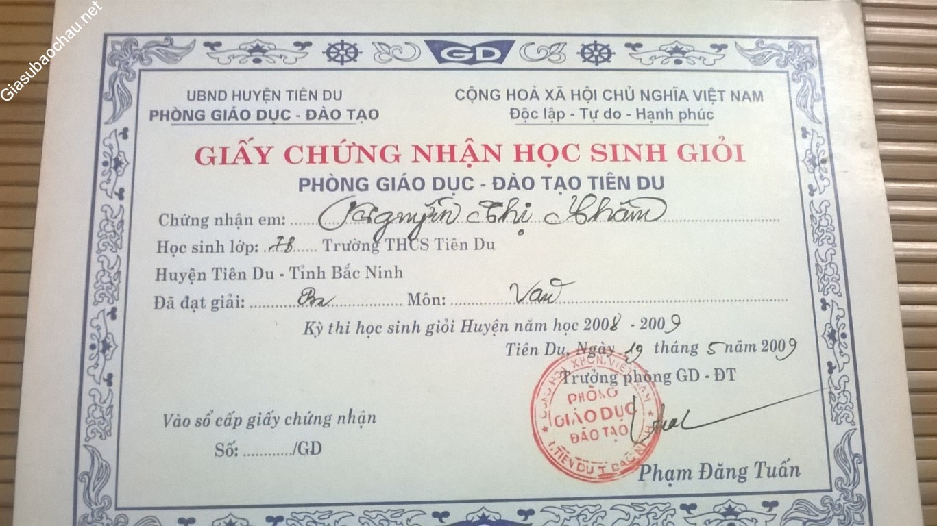 - Giải Nhất Văn cấp huyện Tiên Du năm lớp 6