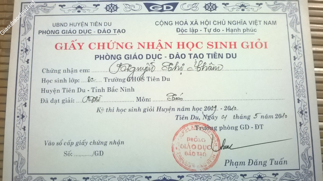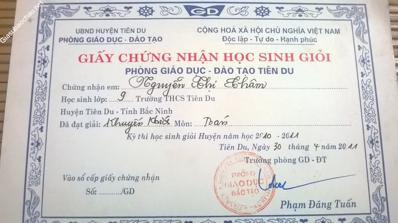 - Giải Khuyến Khích Toán cấp huyện Tiến Du năm lớp 9