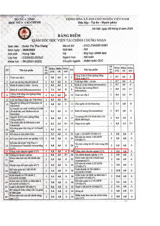 | Trường | HV Tài chính |