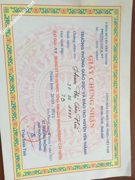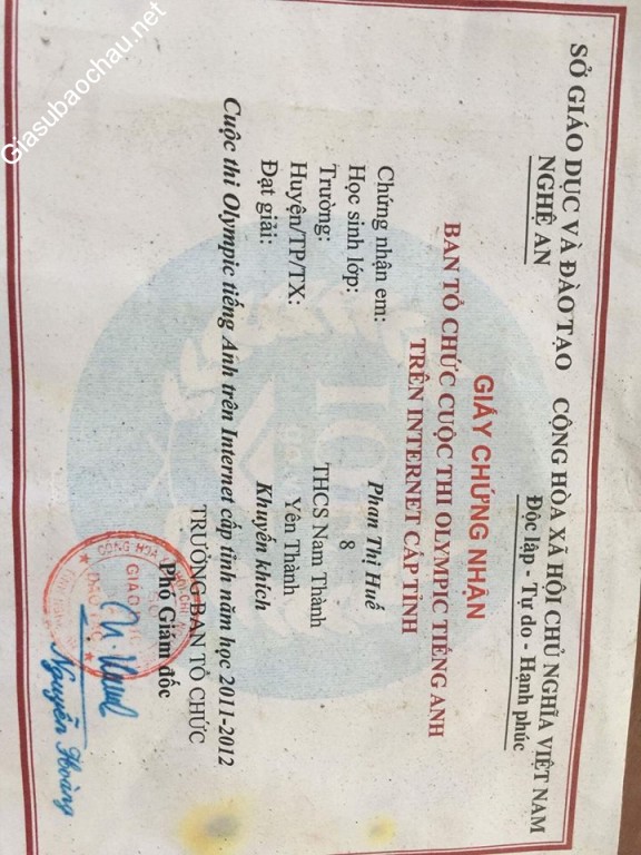 -đạt giải khuyến khích tiêng anh qua mạng cấp tỉnh lớp 8