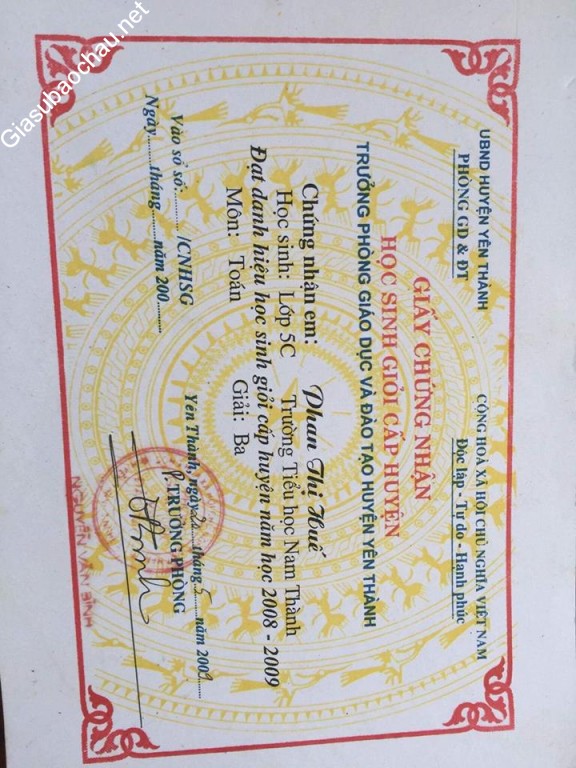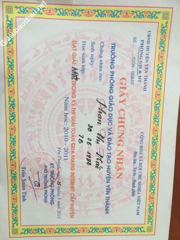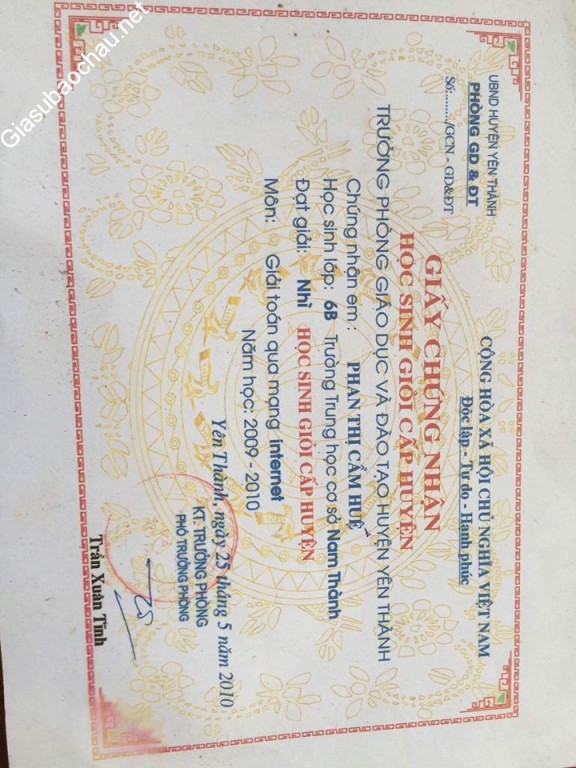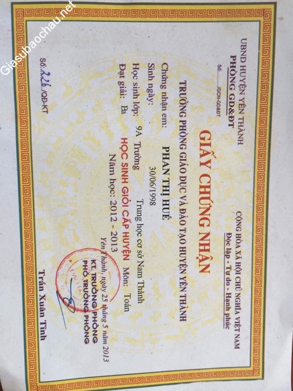 - giải nhất môn toán cấp huyện qua mang lop 9