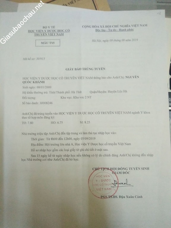 | Trường | HV Y dược học cổ truyền Việt Nam |
