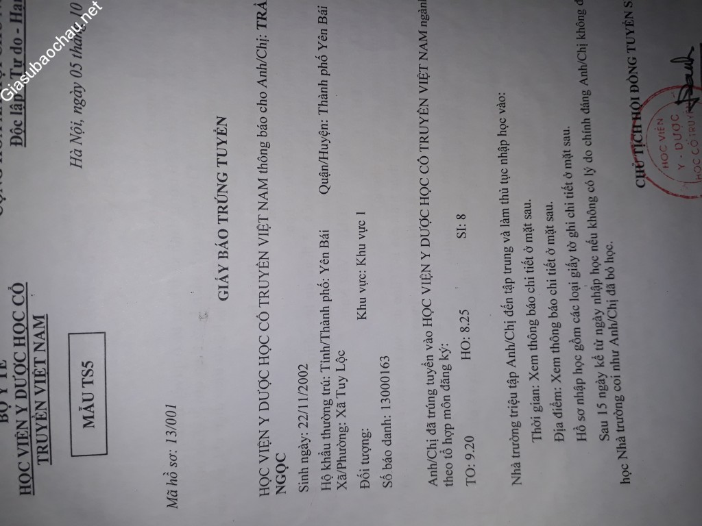 | Trường | HV Y dược học cổ truyền Việt Nam |