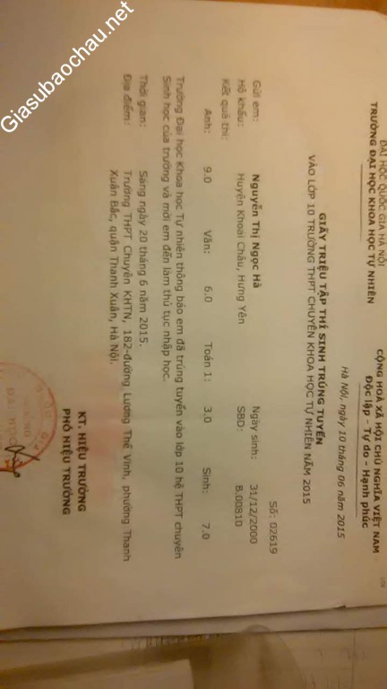 Quý phụ huynh vui lòng xem kỹ thông tin gia sư xem có phù hợp không rồi gọi tới một trong các số: 0966.042.043 (Cô Bảo Châu) - 0966.713.716 (Cô Lệ) của Trung tâm để thông báo việc lựa chọn gia sư này. Trung tâm sẽ gọi điện phỏng vấn gia sư thêm một lần nữa. Nếu gia sư đáp ứng yêu cầu và đồng ý dạy, Trung tâm sẽ gửi số điện thoại của Quý phụ huynh cho gia sư để hai bên trao đổi trực tiếp với nhau.