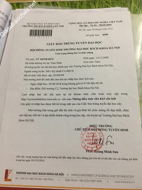| Trường | Trường Đại học Bách Khoa Hà Nội |