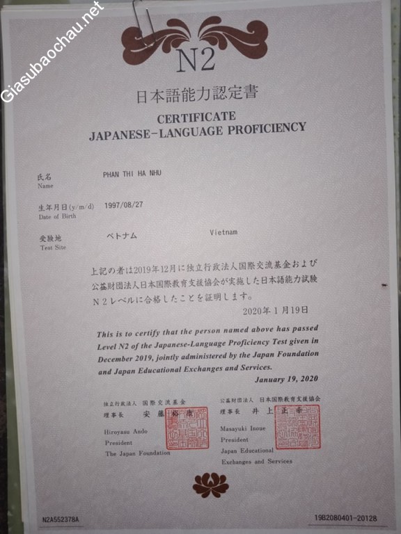 | Khoa | ngôn ngữ và văn hóa nhật bản |