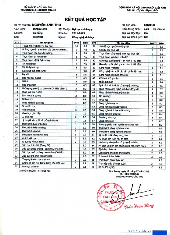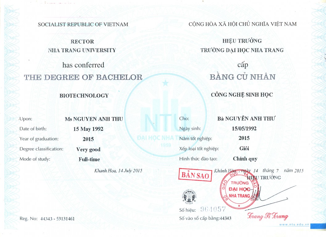 | Khoa | Viện Công nghệ sinh học và môi trường |