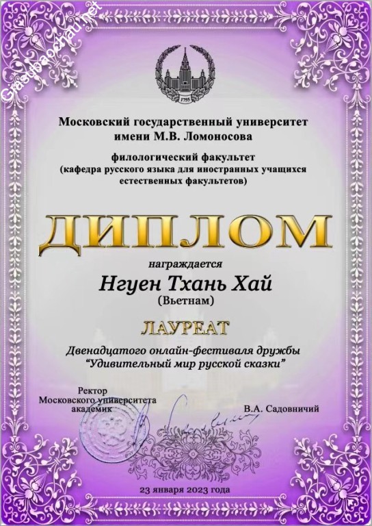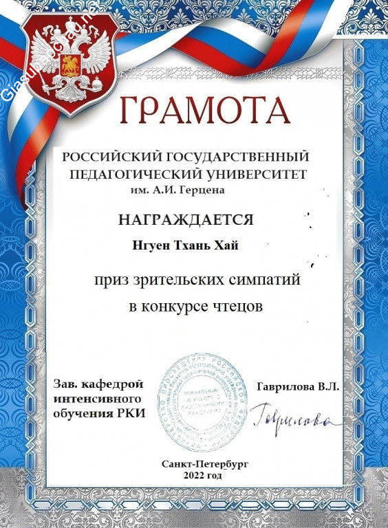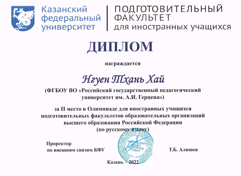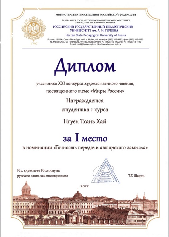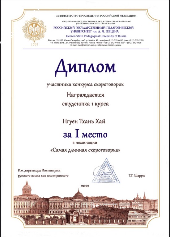 | Trường | Trường Đại Học Sư phạm Quốc gia Nga mang tên A.I.Herzen |