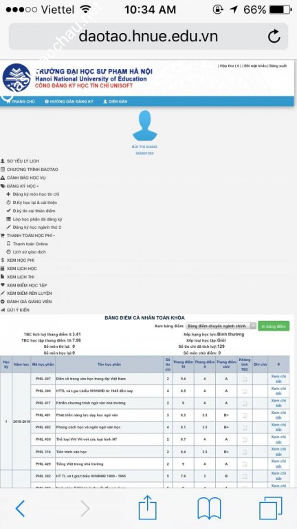 Học lực Đại học: Giỏi. (3.41). Điểm tốt nghiệp 8,05