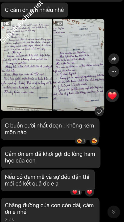 Danh sách TOP những gia sư được các phụ huynh học sinh đánh giá cao nhất.