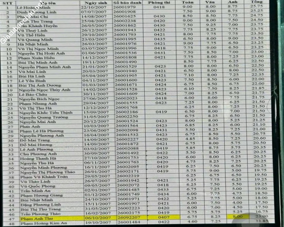 Danh sách TOP những gia sư được các phụ huynh học sinh đánh giá cao nhất.