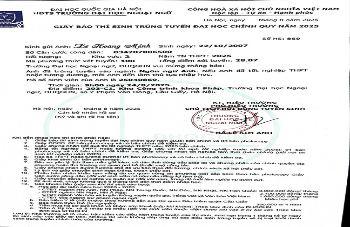 | Trường | ĐH QGHN - ĐH Ngoại ngữ |