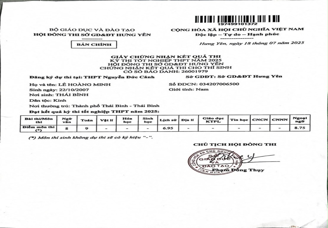 | Quê quán | TP. Thái Bình - Thái Bình |