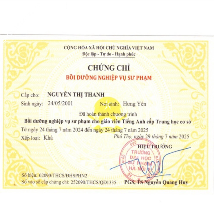 | Trường | Chứng chỉ NVSP tại trường ĐHSP Hà Nội 2 |